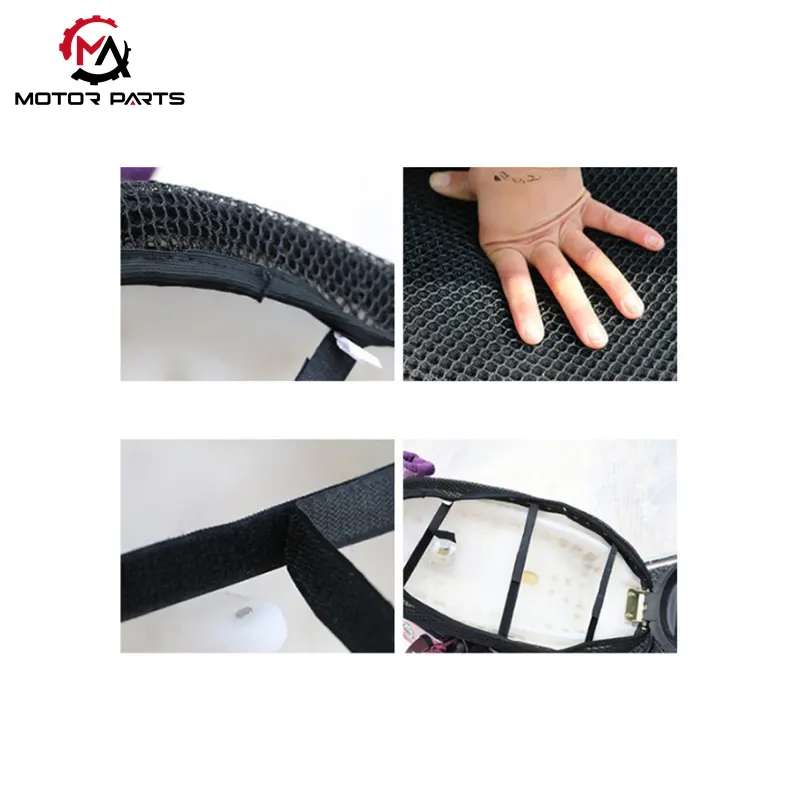 Päikesekaitsega kärgstruktuuriga mootorratta istmepadja kate on reguleeritava elastse rihmaga, mis võimaldab sellel kindlalt istuda nii autode juhi- ja kaassõitjaistmetele kui ka elektri- ja mootorrattaistmetele. Seda saab hõlpsasti kohandada isegi söögitoolideks, diivaniteks ja kontoritoolideks. Pärast kinnitamist püsib see kindlalt paigal, pakkudes erakordset kohanemisvõimet.